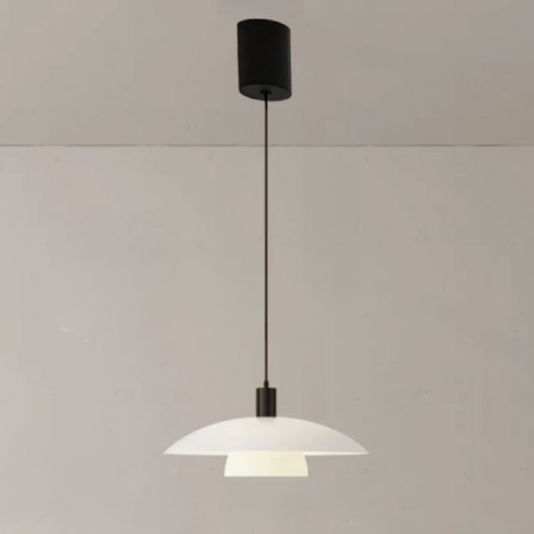 White Glass Ceiling Light with Alloy Shade, Symmetrical Design, Chalk Color, Cord Mounting, Direct Wired Electric with Variable Hanging Length, 110V-120V, 12"