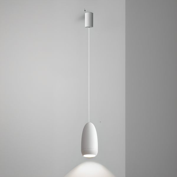 Neutral Light Adjustable Height Hanging Light with 1 LED Light, PMMA Shade, Directed Downward, and Thread Mounting, White, 110V-120V, 12"