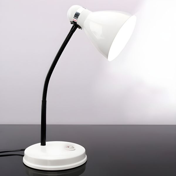 Minimalist Polymer Standard Table Lamp with Downward Shade, Adjustable Height for Residential Use - White 110V-120V
