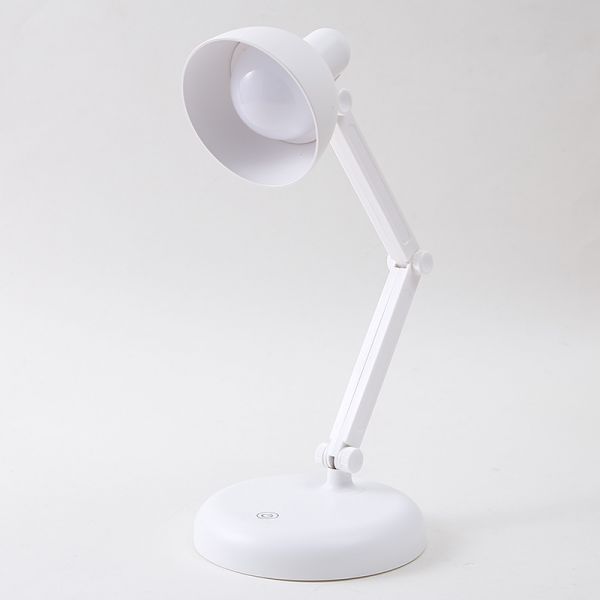 Rechargeable Minimalist Downward Shade Standard Table Lamp, Adjustable Height, Polymer Material, Polymerized Shade, 14", White, 110V-120V