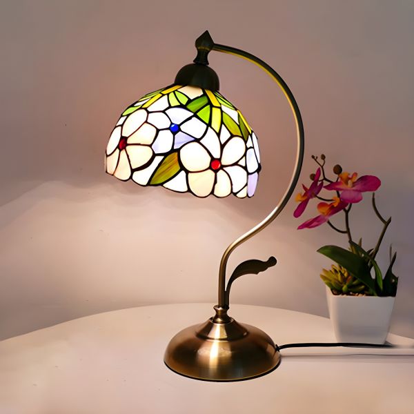 Tiffany Table Lamp 1-Light Desk Light with Glass Shade for Bedroom - 110V-120V White