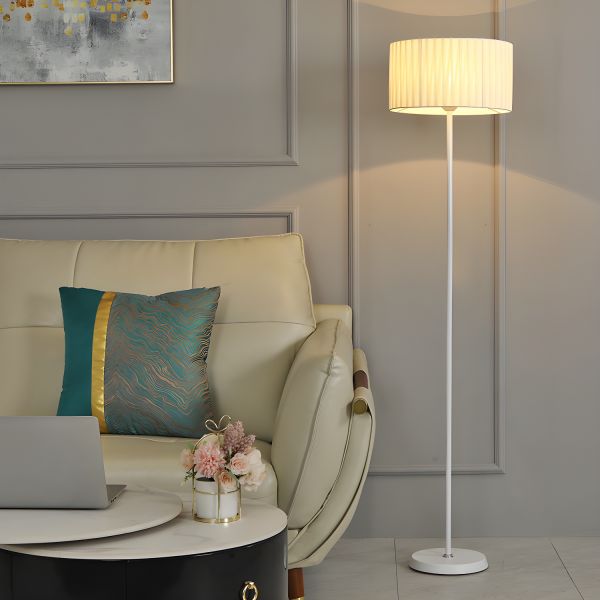 Scandinavian Pleated Floor Lamp with Fabric Shade, Tall Standing Reading Light for Living Room & Bedroom, Weighted Base - 110V-120V Beige