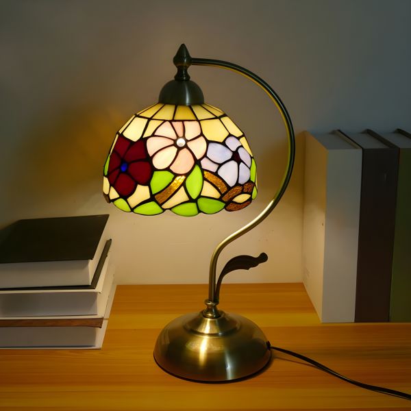 Residential Use 1 Light Tiffany Stained Glass LED/Incandescent/Fluorescent Arc Floor Lamp with Multi-Color Glass Shade, 110V-120V, Purple