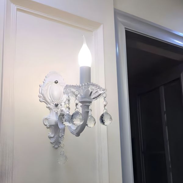 French Country Distressed White Wall Sconce with Crystal Accents - White 110V-120V 1