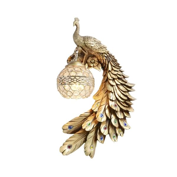 Opulent Sculpted Peacock Wall Sconce with Faceted Crystal Shade - Gold 110V-120V
