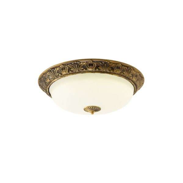 Vintage Antique Brass Flush Mount Ceiling Light, Frosted Glass Dome Fixture with Decorative Metal Rim - Flat Disc L 110V-120V