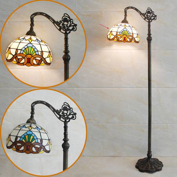 Vintage Stained Glass Floor Lamp, Double-Lit Standing Reading Light with Antique Bronze Finish Base - 110V-120V Cyan