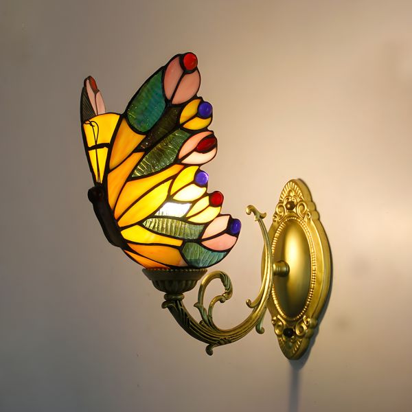 Art Stained Glass Butterfly Wall Sconce, Vintage Vanity Light for Home Decor - 110V-120V Multi/Color 1