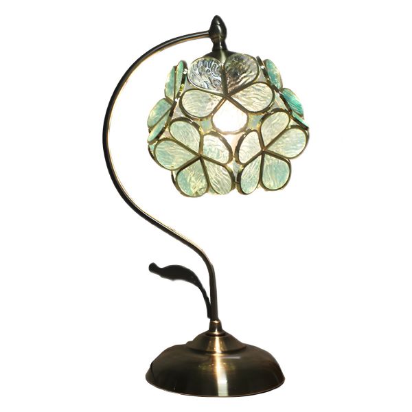 Vintage Tiffany-Style Desk Lamp with Stained Glass Shade & Swan Neck - 110V-120V Blue