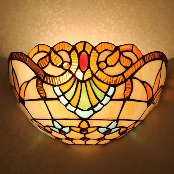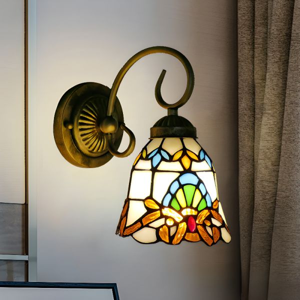 Tiffany-inspired Brass Wall Sconce with Blue/Green/Ivory Glass Shade - Multi/Color 110V-120V