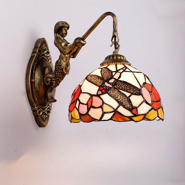 Tiffany Style Metal & Glass Hardwire Wall Sconce with Bowl Shade and Golden Fixture - 110V-120V 7" Mermaid