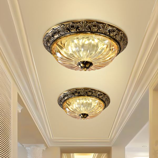1 Light Dome Ceiling Lighting with Crystal Shade and Brass Fixture, 110V-120V