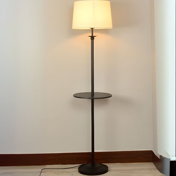Transitional Swing Arm Floor Lamp with Integrated Tray Table and Fabric Shade - Rocker Buffet 110V-120V Black