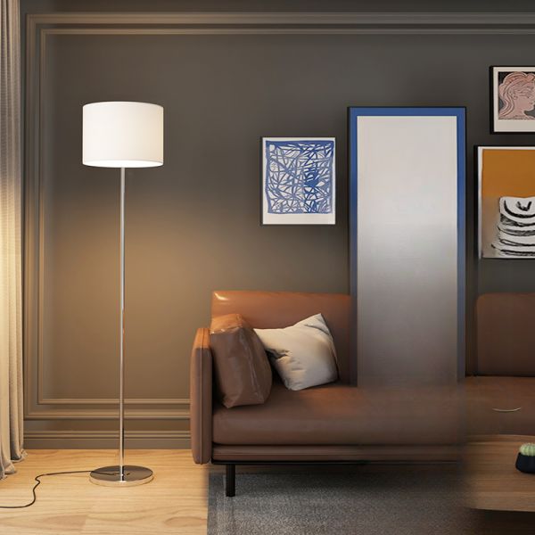 Minimalist Metal Floor Lamp with Fabric Drum Shade and Weighted Round Base - 110V-120V Silver Foot