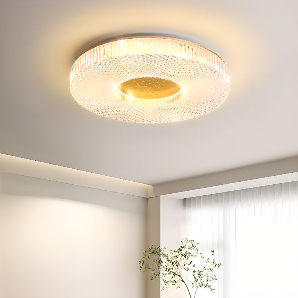Luxe Gold Flush Mount Light, Faceted Crystal LED Ceiling Fixture for Ambient Illumination - 110V-120V Circle 41 cm