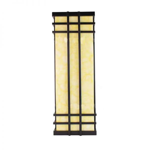 Mission Style Outdoor Wall Sconce, Faux Alabaster Resin Shade, Weather-Resistant Geometric Porch Light - 110V-120V 16" Rectangle