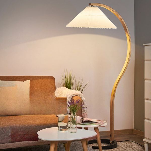 Scandinavian Arc Floor Lamp with Pleated Shade, Tall Standing Reading Light for Living Room - 110V-120V Natural