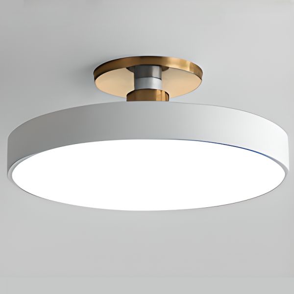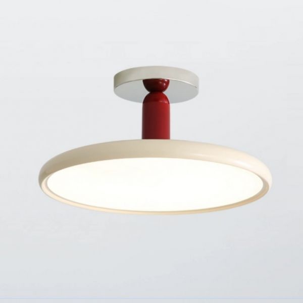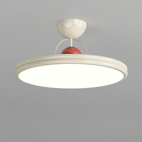 Bauhaus Retro Semi-Flush Mount Ceiling Light, Glossy Metal Disc LED Fixture for Bedroom - Cream 110V-120V 12"