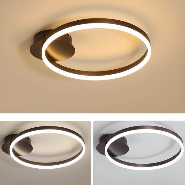Minimalist LED Flush Mount Ceiling Light, Ultra-Slim Geometric Ring Fixture - Black 110V-120V 12" Warm Light