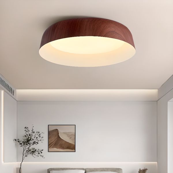 Japandi Round LED Flush Mount Light, Minimalist Ceiling Fixture with Soft Glow - White Light Walnut 110V-120V 16.5"