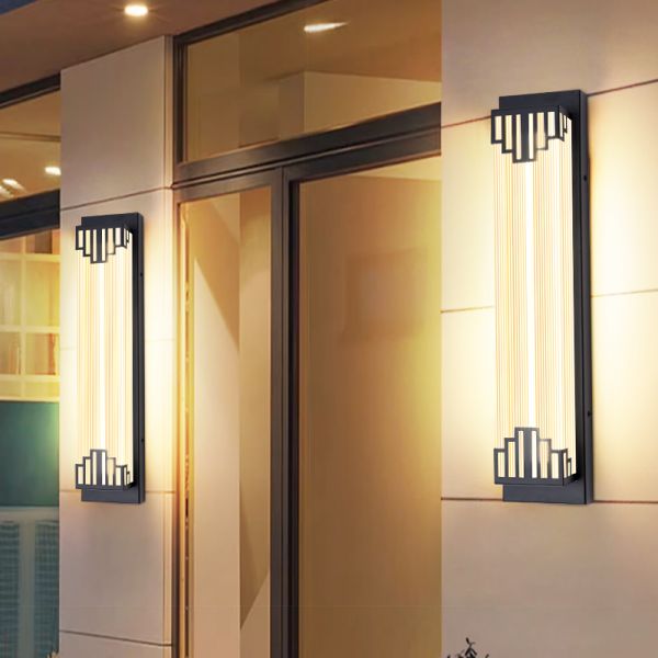 Contemporary Architectural Linear Wall Sconce, Weather-Resistant Stainless Steel & Ribbed Acrylic - Matte Black 110V-120V 18"