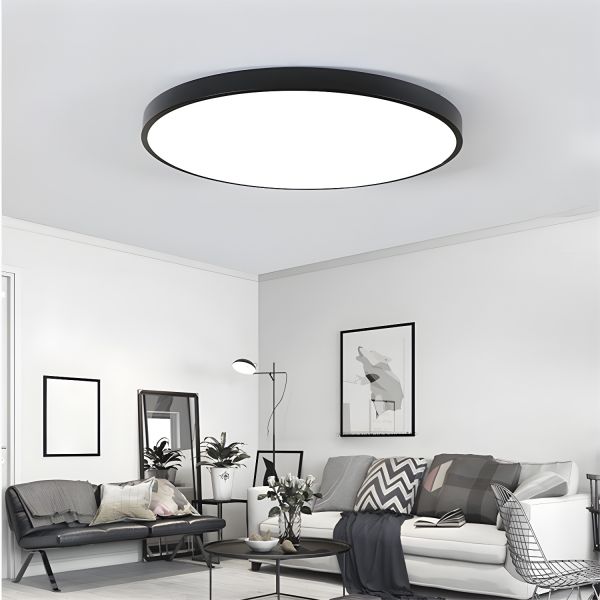 Minimalist Round LED Flush Mount Ceiling Light Low Profile Bedroom Fixture - 110V-120V Black 12" White Light