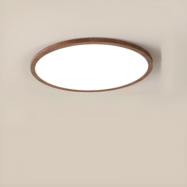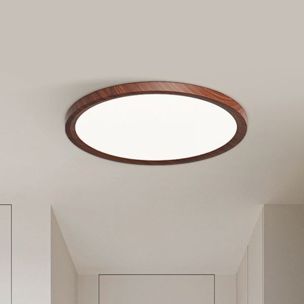 Plastic Circular 1 Light Ceiling Mount Light with PMMA Shade, Simplistic LED Fixture, Direct Wired Electric, 110V-120V, 12", Walnut