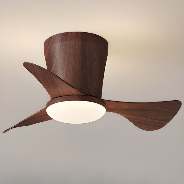 Walnut Color Flush Mounted Ceiling Fan with Light, Integrated LED, 3 Blades, Third Gear Color Temperature for Residential Use, ABS Plastic, 110V-120V