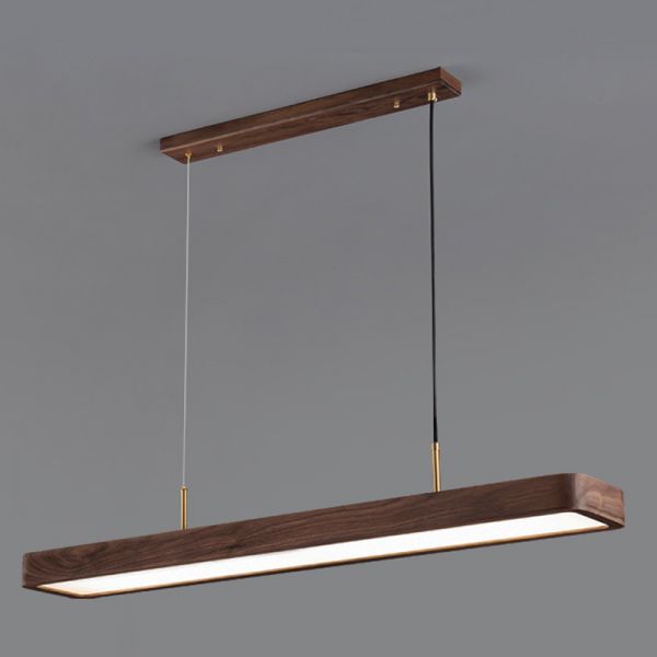 Nordic Minimalist Solid Wood Linear Pendant Light, LED Island Chandelier with Adjustable Height - 110V-120V Warm Light 31.5"