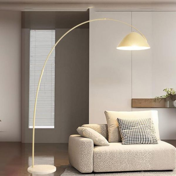 Mid-Century Arched Floor Lamp with Adjustable Dome Shade & Weighted Base - 110V-120V Butter Yellow Medium Marble