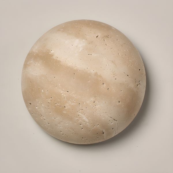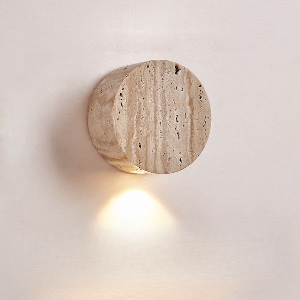 Organic Minimalist Travertine Wall Sconce, Natural Stone Round LED Fixture for Ambient Light - 110V-120V 9.1" Warm Light