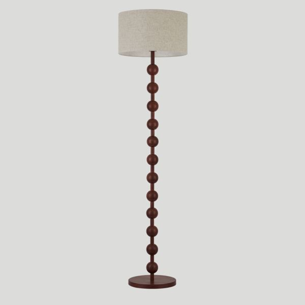 Mid-Century Walnut Finish Floor Lamp with Textured Linen Shade and Soft Ambient Light - 110V-120V