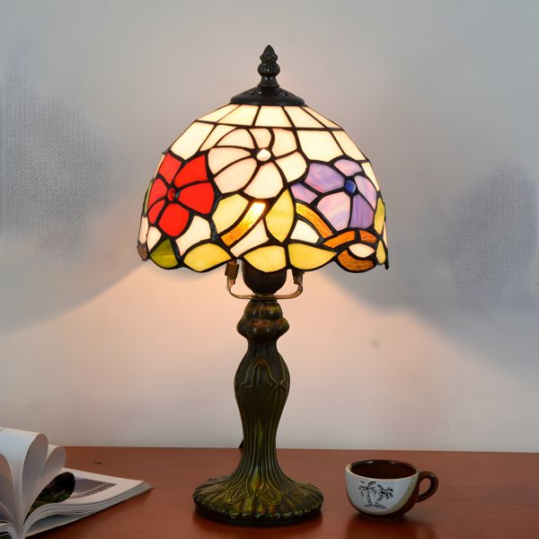 Vintage Art Nouveau Stained Glass Table Lamp with Antique Bronze Base for Warm Ambient Lighting - 110V-120V Apricot