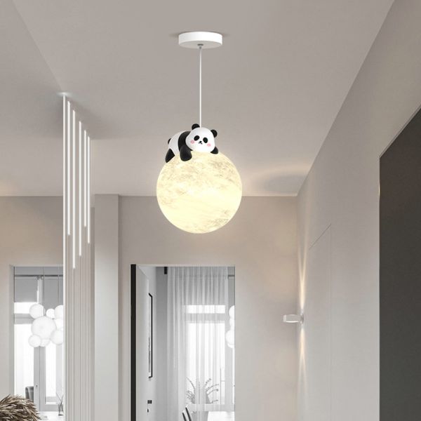 Whimsical LED Animal Pendant Light, Cute Moon Hanging Fixture for Nursery & Kids Bedroom - Beige 110V-120V Panda