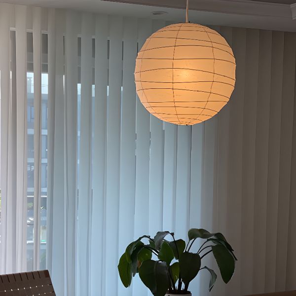 Zen Minimalist Rice Paper Pendant Light Shade, Handcrafted Washi Hanging Lantern for Soft Ambient Glow - 110V-120V Globe 12"
