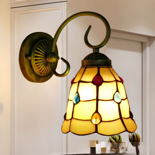 Tiffany-inspired Brass Wall Sconce with Blue/Green/Ivory Glass Shade - Beige 110V-120V
