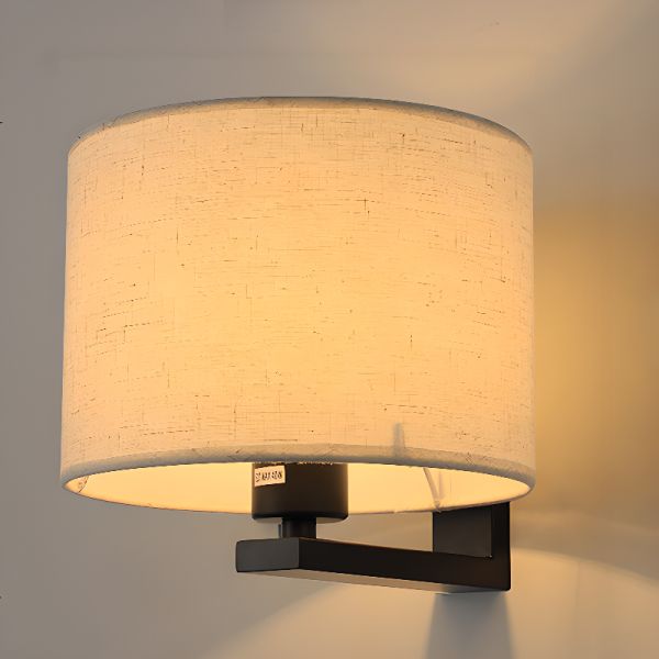 Classic Contemporary Fabric Wall Sconce Iron & Linen Accent Light for Bedroom & Hotel - 110V-120V Cylinder Black Beige