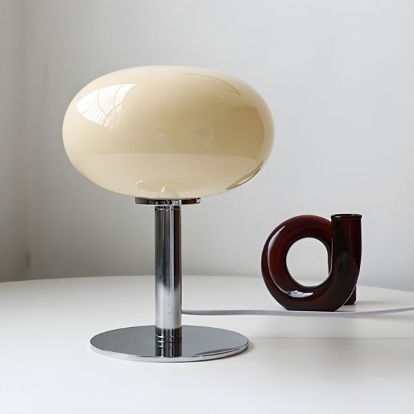 Bauhaus Glass Mushroom Table Lamp, Chrome Base Warm LED Bedside Nightstand Light - 110V-120V Beige
