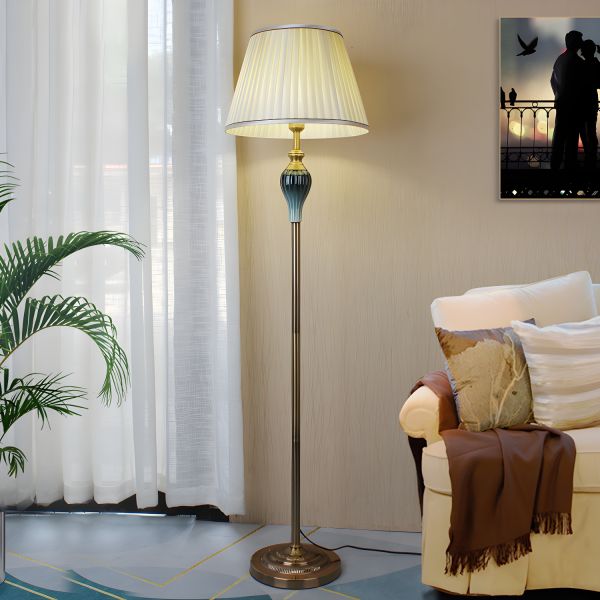 Vintage Traditional Ceramic Floor Lamp with Pleated Shade and Antique Brass Finish Base - 110V-120V Beige