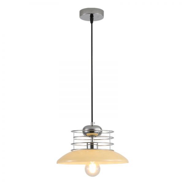 Mid-Century Retro Pendant Light with Glossy Dome Shade and Chrome Wire Cage Accent - Beige 110V-120V