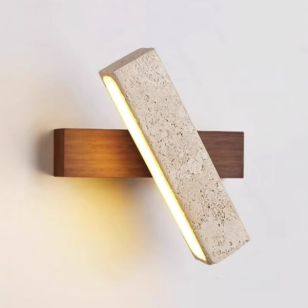 Japandi Natural Travertine Wall Sconce, Solid Wood Fixture for Bedroom Hallway Living Room - 110V-120V Walnut Pull Chain
