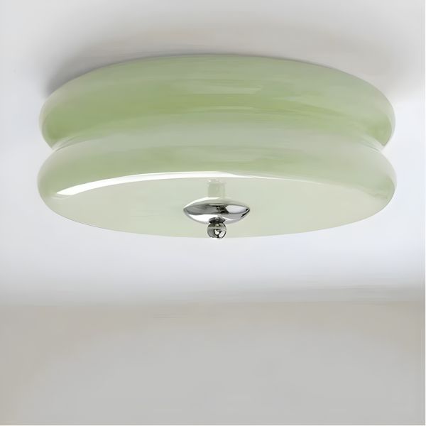 Bauhaus Retro Flush Mount Ceiling Light, Matte Resin Ring Fixture for Bedroom or Entryway, Soft Glow - Green 110V-120V