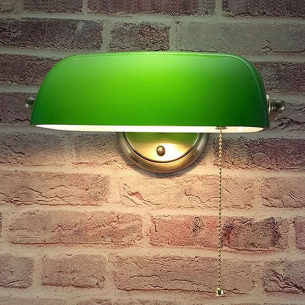 Vintage Banker Wall Sconce with Pull Chain and Adjustable Glass Shade - Green 110V-120V