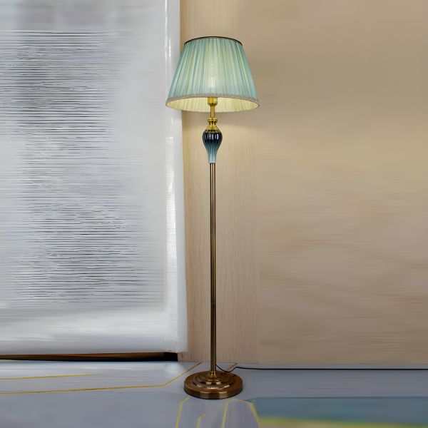 Vintage Traditional Ceramic Floor Lamp with Pleated Shade and Antique Brass Finish Base - 110V-120V Green