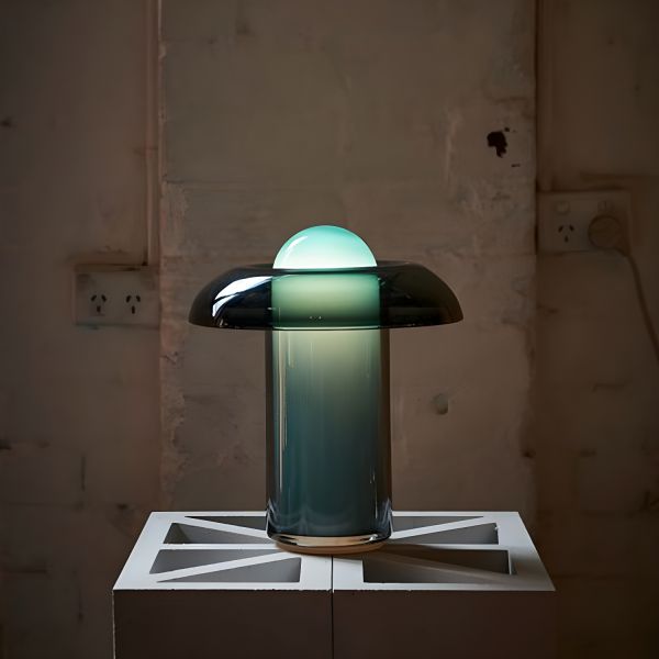 Mid-Century Glass Mushroom Table Lamp, Double-Walled Ambient Light with Brass Base - 110V-120V