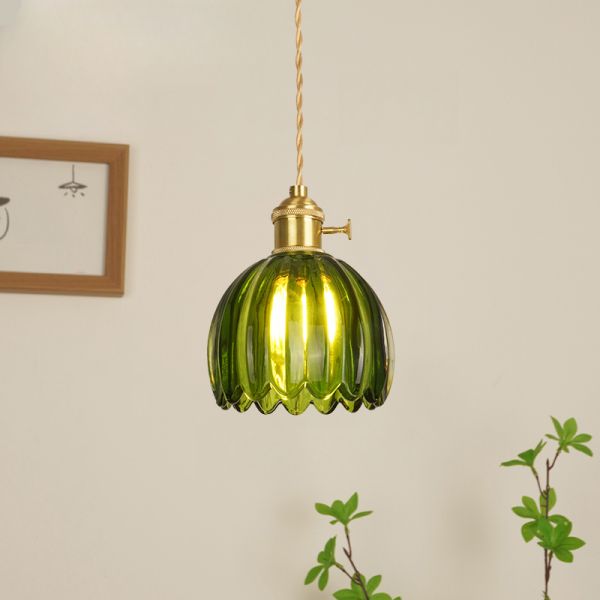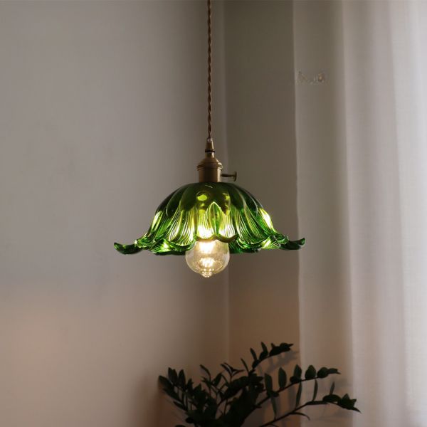 Vintage Floral Glass Pendant Light with Brass Socket Adjustable Hanging Lamp for Kitchen Island - Green 110V-120V