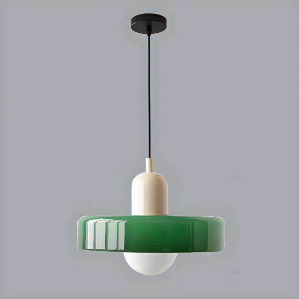 Mid-Century Bauhaus Pendant Light, Glossy Geometric Hanging Fixture for Dining Room Kitchen Island - 110V-120V White Green