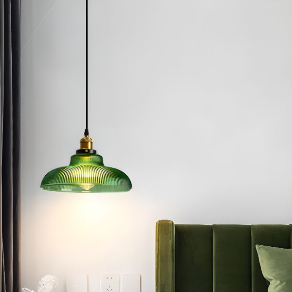 Mid-Century Fluted Glass Pendant Light, Vintage Industrial Hanging Fixture with Brass Accents - Green 110V-120V
