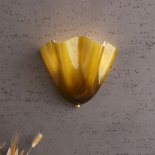 Mid-Century Pleated Glass Wall Sconce, Vintage Style Ambient Lighting Fixture - Green 110V-120V