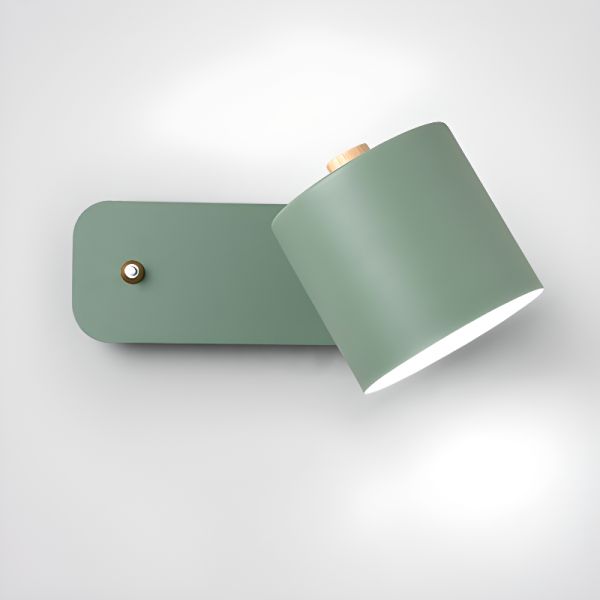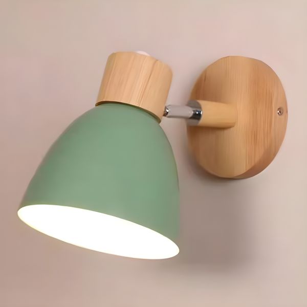 Scandinavian Wall Sconce with Wood Accent, Adjustable Swivel Head and Built-in Switch - 110V-120V Green